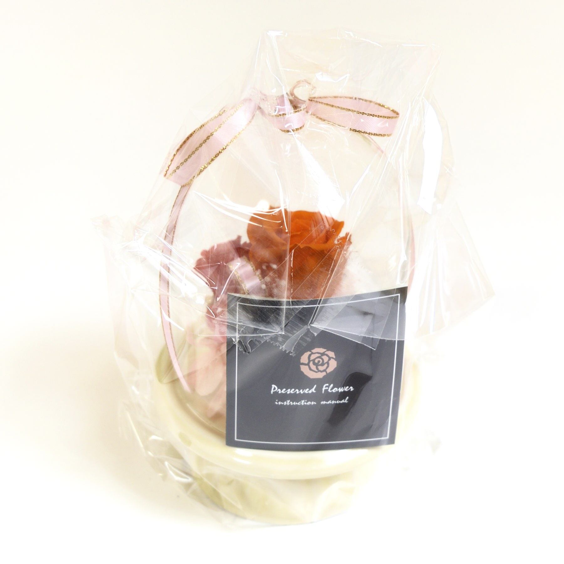 陶器の台にアジサイ・バラ・かすみ草などのさまざまなプリザーブドフラワーをガラスドームで綺麗なまま鑑賞できるとっても可愛いらしいギフトにぴったりの商品です。ドームの上には幸せを運ぶ子鳥さんがいますよ。母の日に感謝の気持ちに添えるのに最適です。